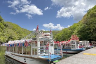 変わりない大自然の中を悠然とすすみ水面から望む峡谷の景観は絶景です。 紅葉シーズンは元より春の新緑、夏の清涼感もお勧めです。スタッフ一同お客様のご来訪を心より歓迎いたします